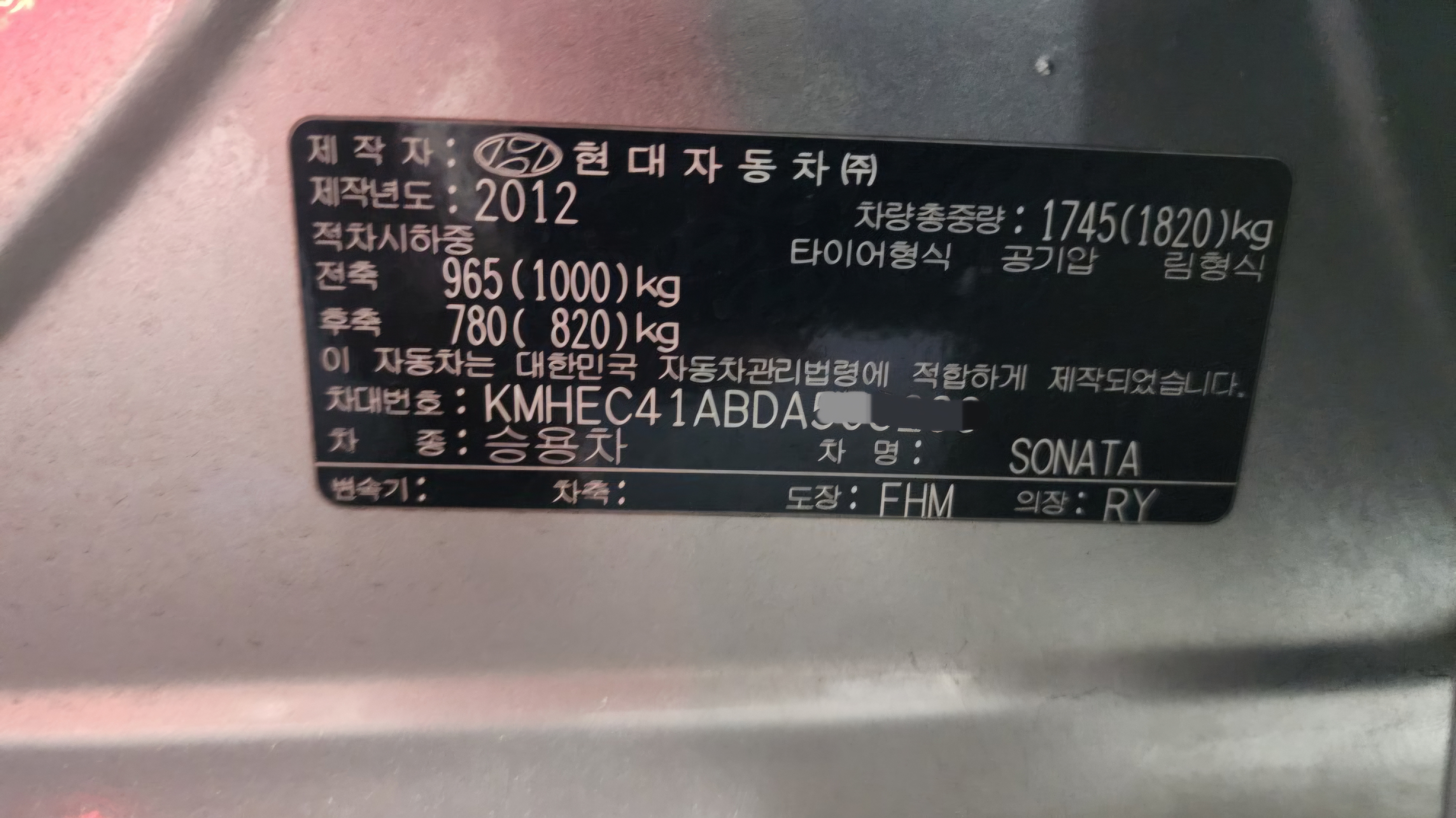 2012년식 현대 소나타 차량은 현재 연식이 10년 이상 지나면서
