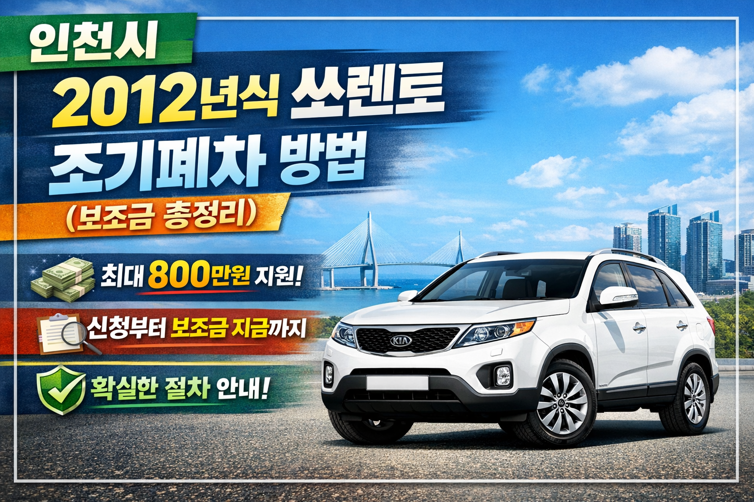 오늘은 인천시 2012년식 쏘렌토 조기폐차 조건, 보조금, 진행 절차를 한 번에 정리해드리겠습니다.
