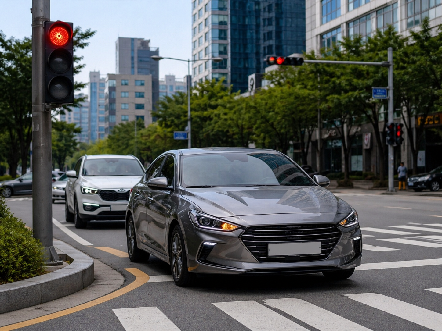 첫째, 전방 차량 신호가 빨간불이면 일단 멈추기입니다.