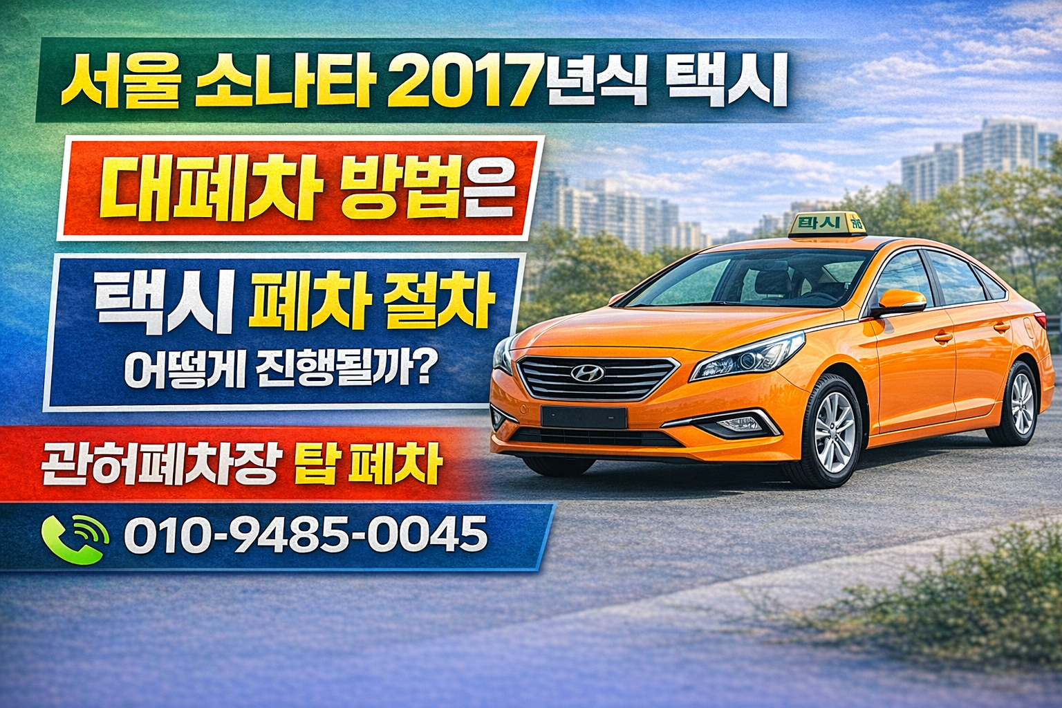 서울에서 소나타 택시 대폐차 방법이나 택시 폐차 절차가 궁금하다면 차량번호 확인 후 정확한 상담을 받을 수 있습니다.