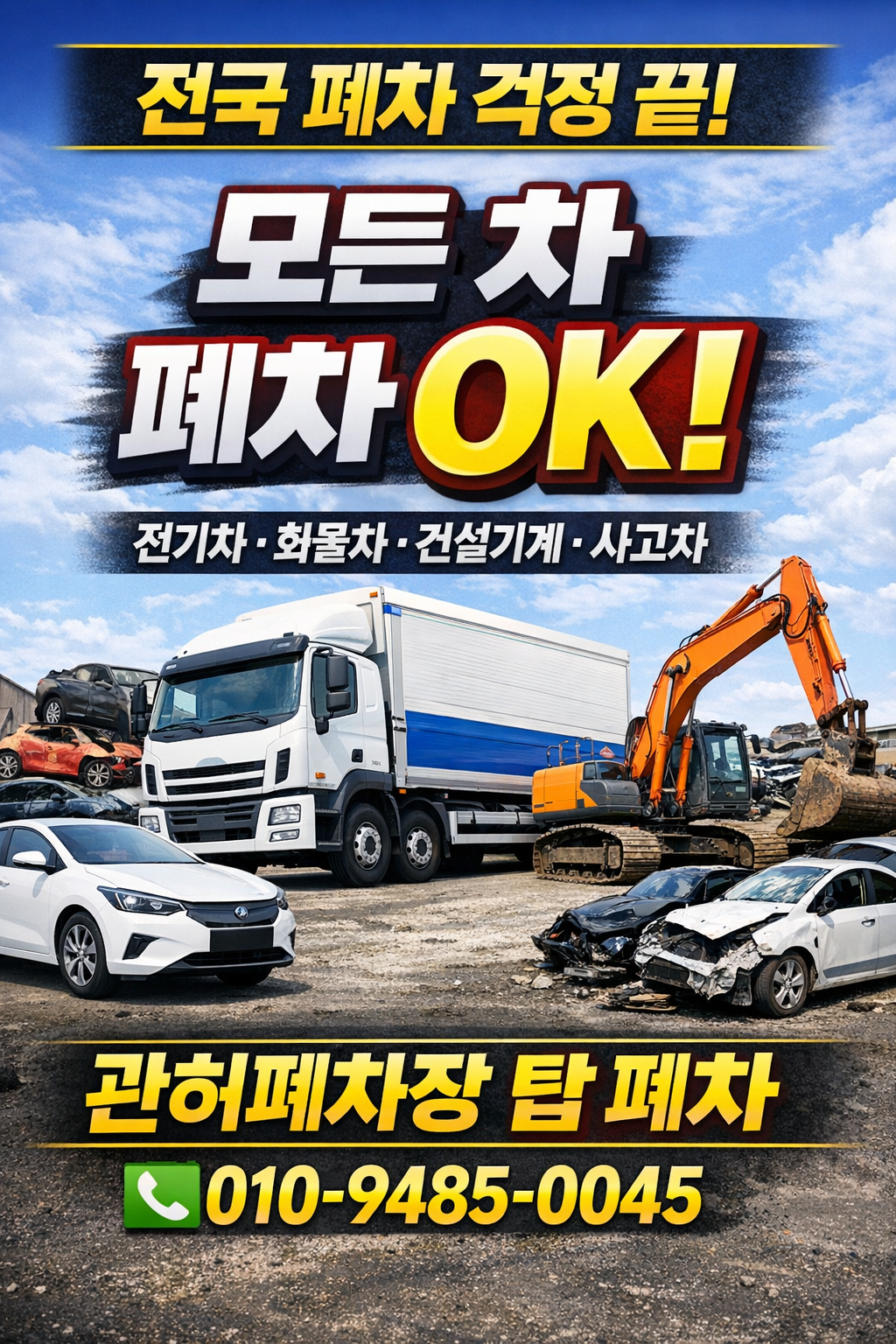 전국 어디서나 폐차 상담을 도와드리는 관허폐차장 탑 폐차입니다.
