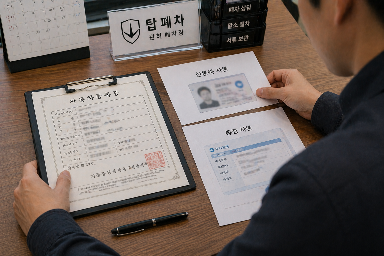 일반폐차 절차는 복잡하지 않다. 먼저 차량번호로 원부조회를 한다. 압류와 저당이 없으면 차량등록증, 신분증 사본, 입금 받을 계좌 정보를 준비한다. 이후 견인 일정을 잡고 차량이 관허폐차장으로 입고된다.