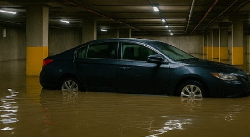 - 상황 : 지하주차장 절반 이상 침수 → 엔진룸까지 물 유입