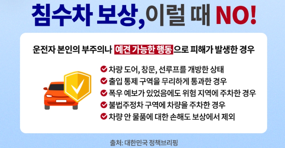 - 침수 위험 지역 주차 금지 (지하주차장, 하천 주변)