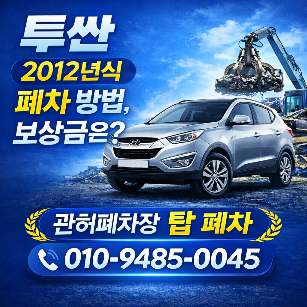 입니다. 오늘은 투싼 2012년식 폐차 방법과 보상금 기준을 정확하게 정리해 드리겠습니다.