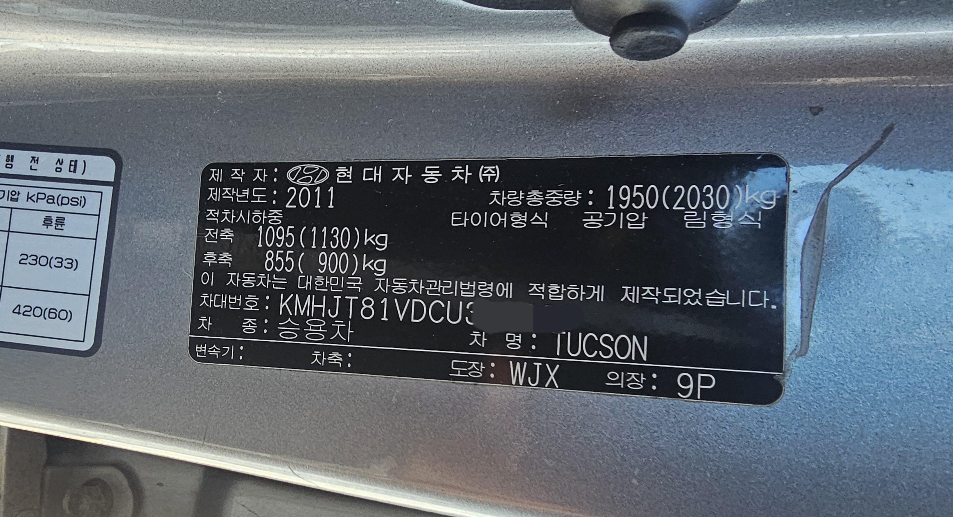2012년식 현대 투싼 차량은 현재 차량 연식이 10년 이상 지나면서