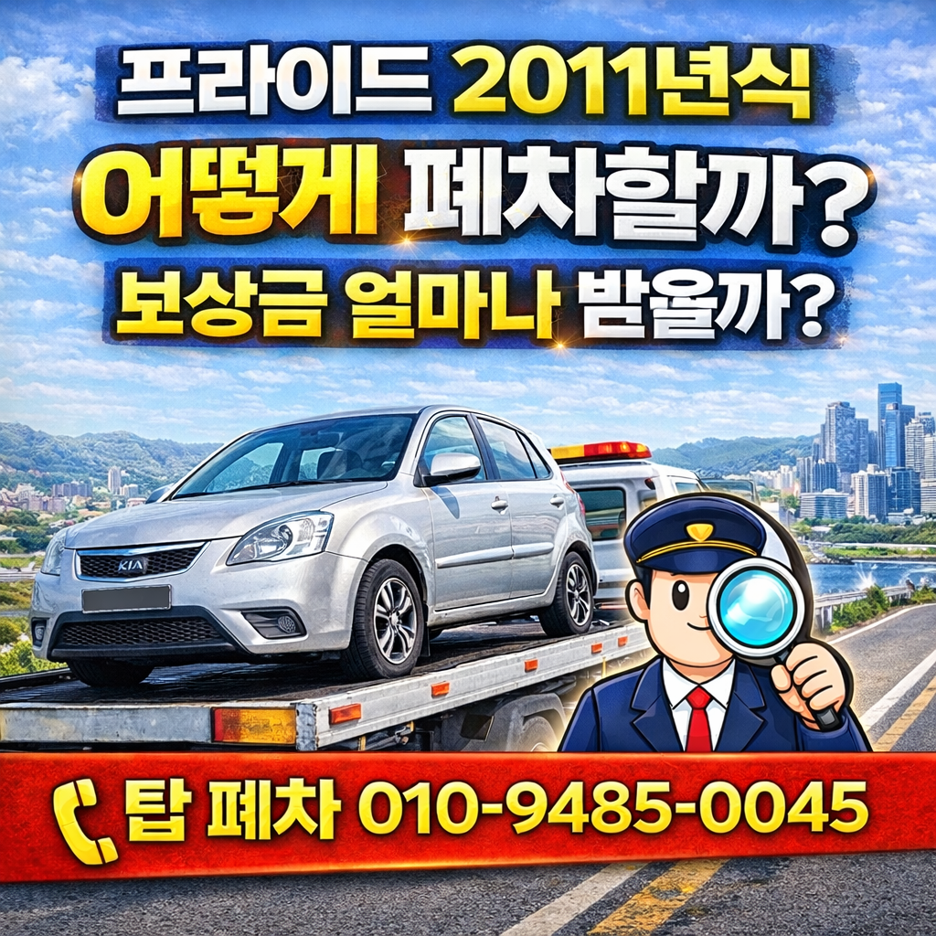 오늘은 프라이드 2011년식 폐차 방법과 폐차 보상금 기준을 정확하게 정리해드립니다.